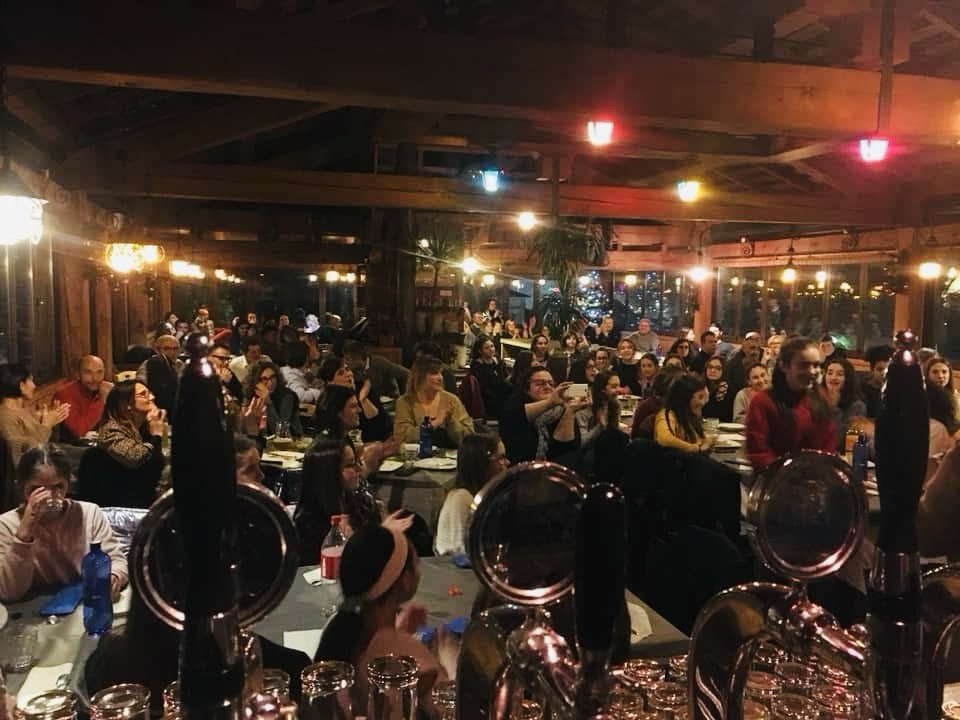 La struttura, interamente in legno, è stata realizzata come una vera baita di montagna, con travi a vista e dettagli curati che creano un ambiente intimo e suggestivo.