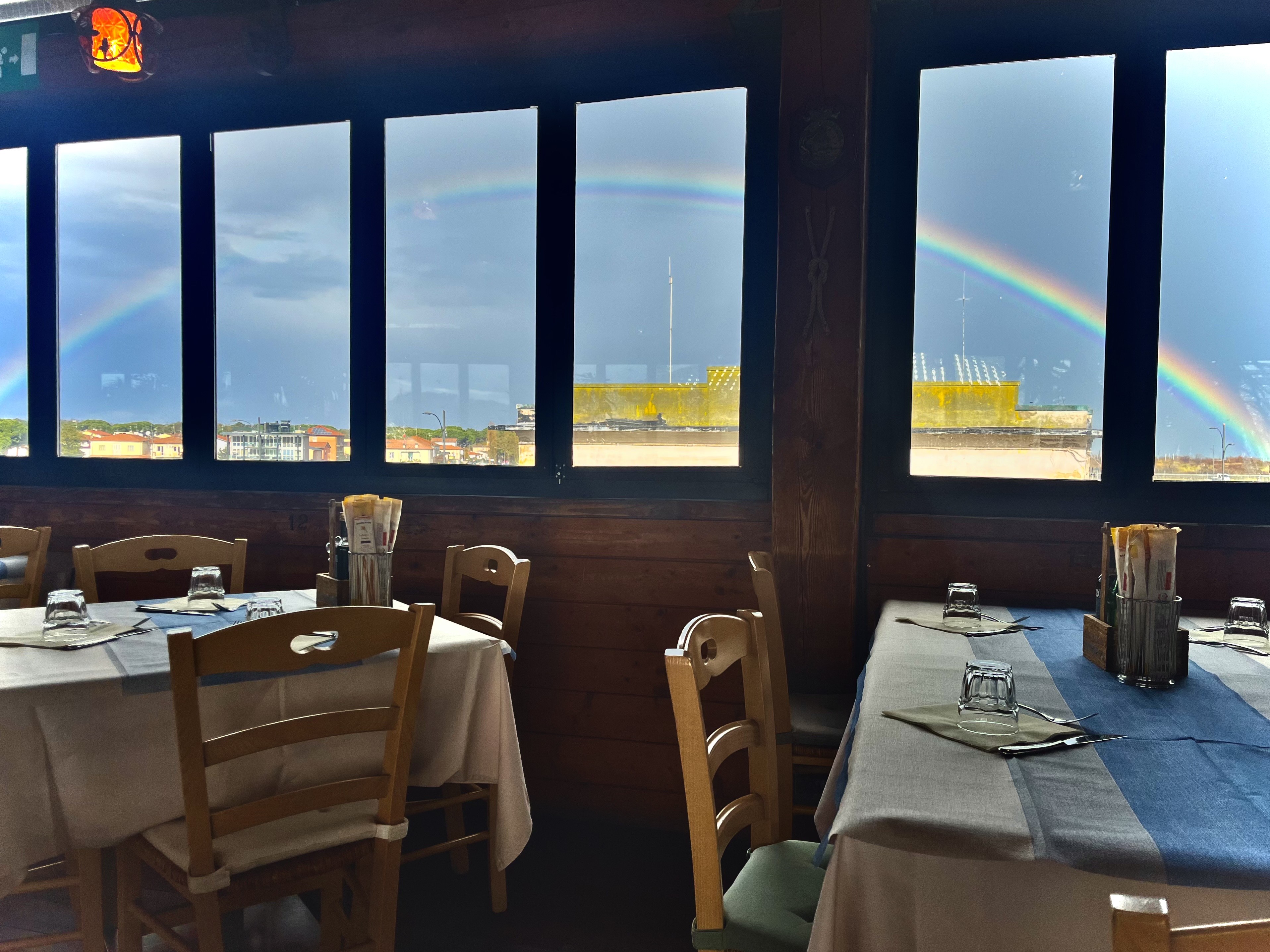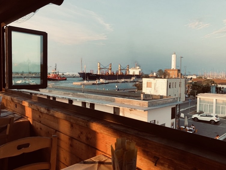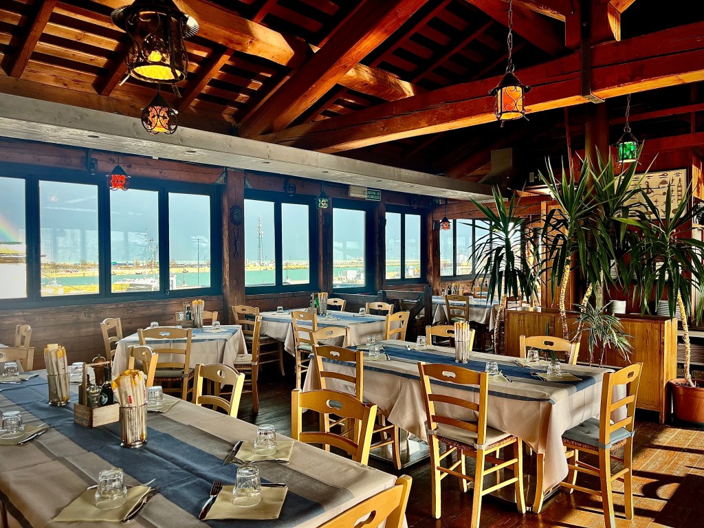 Ristorante pizzeria vista mare e porticciolo: unico nel suo genere, ha una terrazza al coperto con finestre completamente apribili nei tre lati.