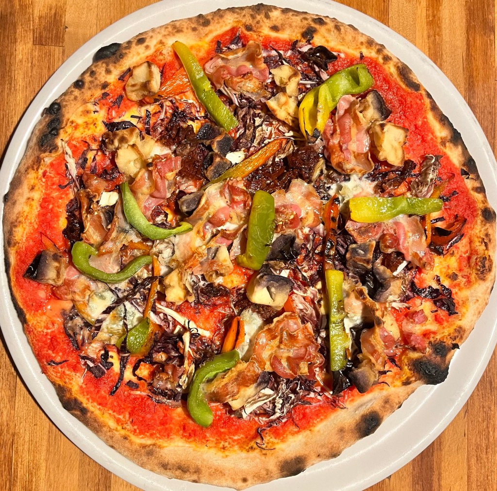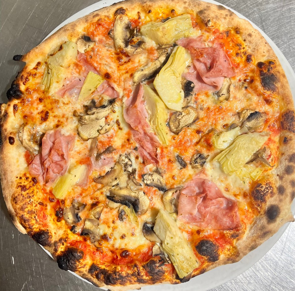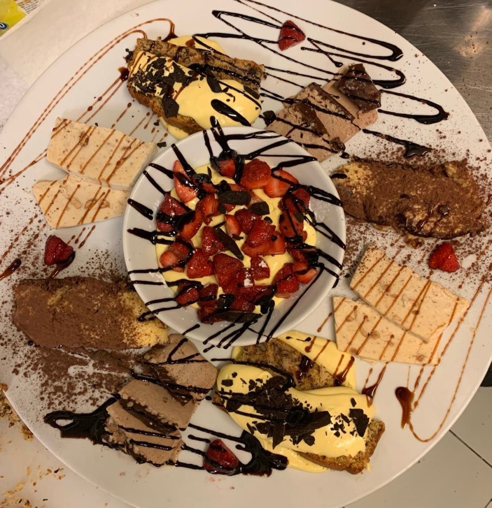 Completa l’offerta con una varietà di pizze cotte al forno e una selezione di dolci fatti in casa, perfetti per chiudere il pasto con un tocco di dolcezza.
